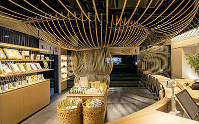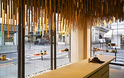斬新な店舗設計は建築家 隈研吾氏。1200本の竹が使われた店内は、セーヌ川通りを歩く人たちの視線を独占。パリのサンジェルマン・デプレに本格的なお茶専門店が誕生しました。